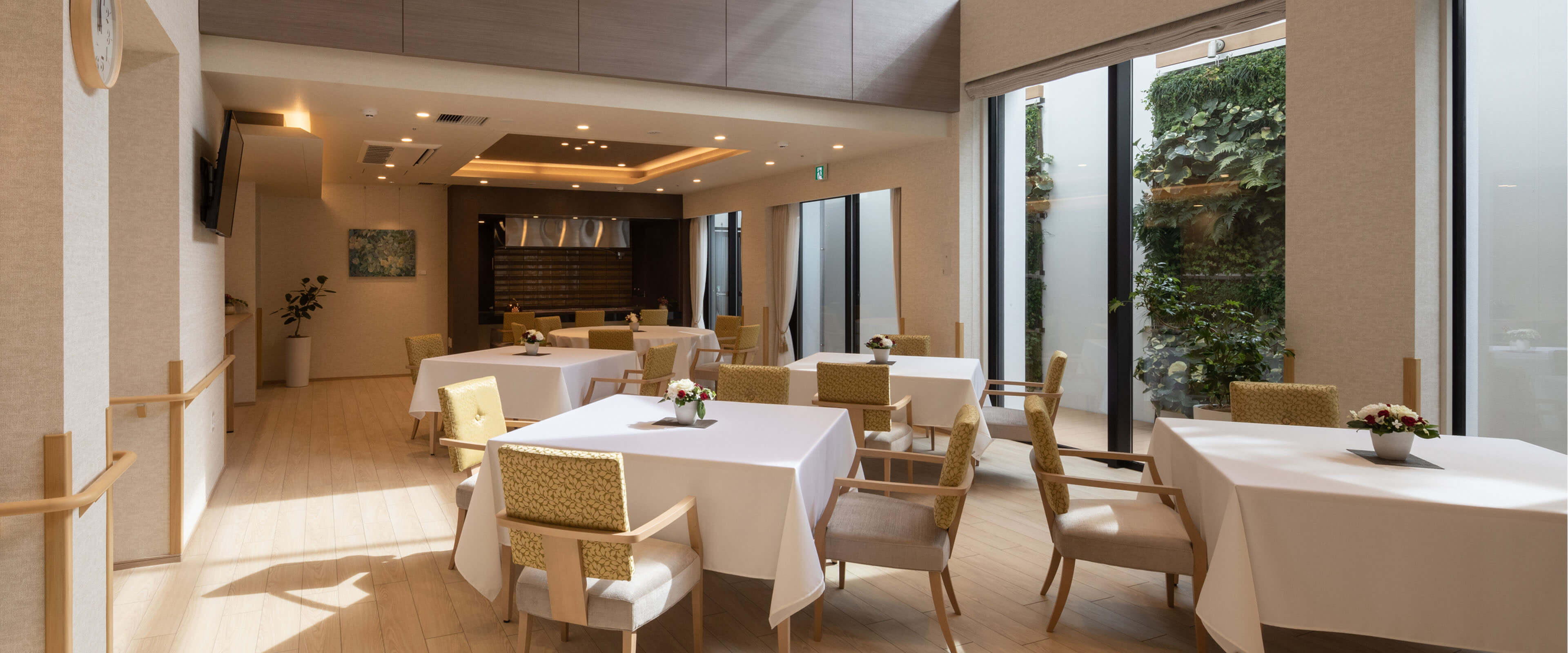 こだわりの立地に佇むホームでは、ご入居者様に相応しい洗練された空間で、安らぎのある暮らしをお送りいただけます。ご自宅以上のくつろぎと安心感に満ちた日々をお過ごしください。