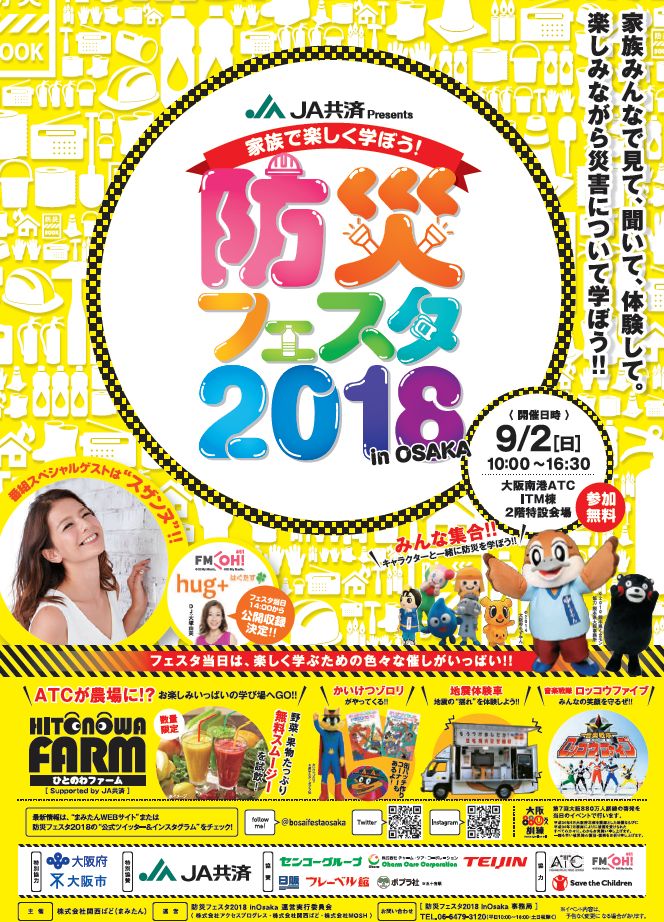 当社は、9月2日(日)大阪南港ATCホール(アジア太平洋トレードセンター:大阪府住之江区)にて開催される「防災フェスタ2018 in OSAKA」に出展いたします。