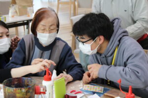 これまで作品募集に参加した若手アーティストや、アート関連NPO法人と企画開発を行い、ご入居者様向けアートレクリエーションを開催しております。アートに関わる活動が、ご入居者様の意欲とQOL向上に働きかけるとともに、アートから生まれるコミュニケーションを介して、ご入居者様とそのご家族、地域の子どもたち、若いアーティストや介護スタッフを「つなぐ」きっかけとなるよう、引き続き取り組んでまいります。