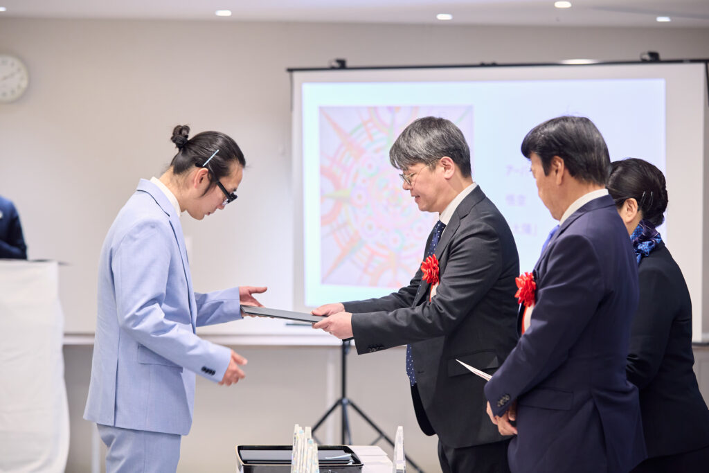 小梶社長より表彰状と賞牌、賞金目録を授与 |