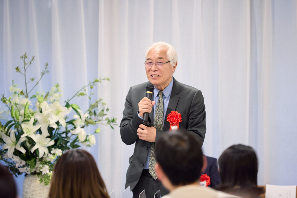 第25回アートギャラリーホーム表彰式が、このように盛大に開催されましたことを、心よりお祝い申し上げます。また、各賞を受賞されたアーティストの皆様にも、心よりお祝い申し上げます。作品を生み出す過程には、多くの葛藤や苦労があったことと存じますが、その努力の結晶が評価され、このような場で顕彰されることに深い敬意を表します。アートギャラリーホームの活動は、高齢者施設で生活される方々に、喜びや生きがい、前向きな気持ちを届ける大変意義深い取り組みです。当社も長年にわたり芸術支援を行っており、強い共感と尊敬の念を抱いております。今後のさらなる発展とアーティストの皆様の一層のご活躍を心より祈念いたします。