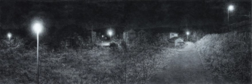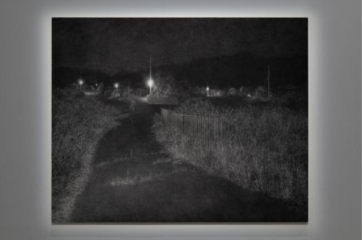 1993年愛知県生まれ。愛知県立芸術大学大学院修了。語られにくい過疎地や住宅街などを訪れ、主に夜の風景を木炭で描く。その地で盆踊りを踊り、場所が孕む記憶を身体的に捉えながら、人の営みの痕跡を探求する。忘れ去られた場所を「供養」しつつ、匿名化していく制作スタイルと、深い精神性を湛えたモノクロームの表現で、風景画の新たな可能性を提示する。
