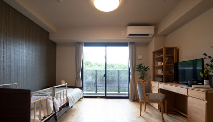 全57室の居室は完全個室でプライベートな空間を確保。居室にお気に入りの家具、こだわりの家具を持ち込み自分好みの空間に。