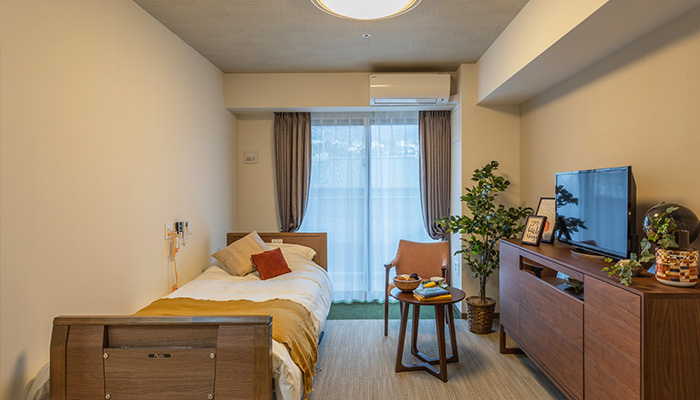 全77室の居室は完全個室となっておりお気に入りの家具、こだわりの家具を持ち込む事で自分好みの空間に。