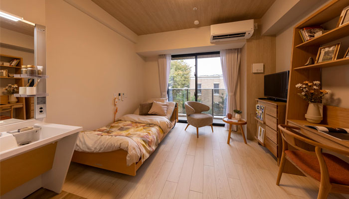 全34室の居室は完全個室となっておりお気に入りの家具、こだわりの家具を持ち込む事で自分好みの空間に。