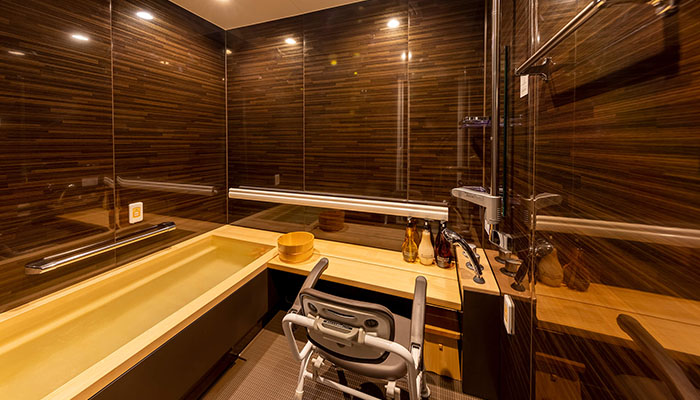 浴室は檜風呂、石風呂といった特別な浴室もご用意。介護度の高いご入居者様でも安心してご入浴いただける介護浴室も完備いたします。