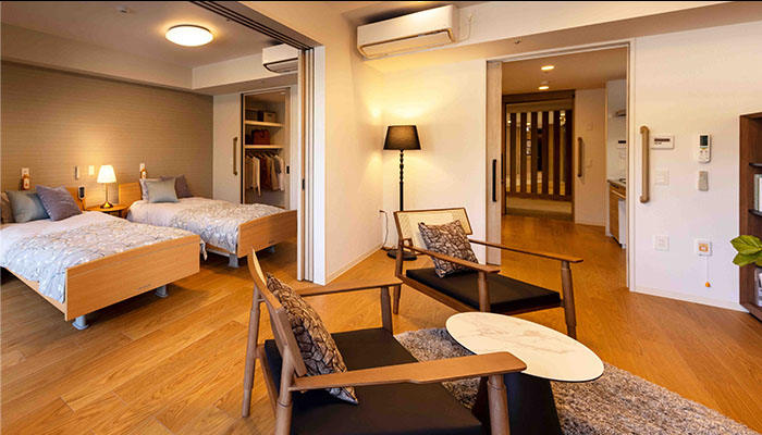 2人部屋を全26室ご用意。また、広いお部屋をご希望されるご入居者様はお一人でもご利用いただけます。