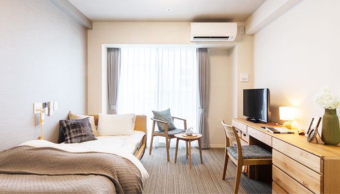 全36室の居室は完全個室となっておりお気に入りの家具、こだわりの家具を持ち込む事で自分好みの空間に。