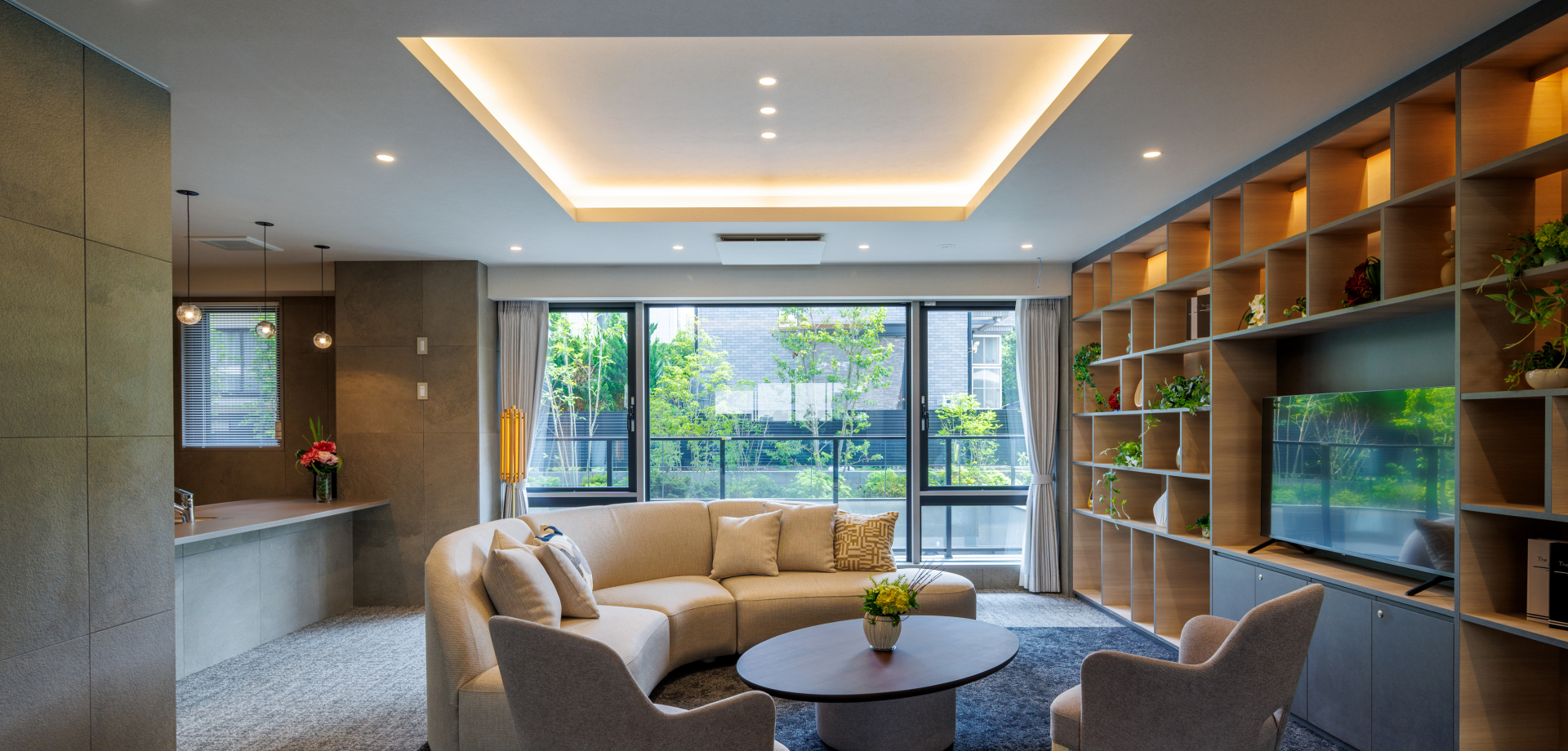 洗練されたデザインと介護施設としての使いやすさ、住宅としての日常生活における快適性を兼ね備えた唯一無二の空間となっています。