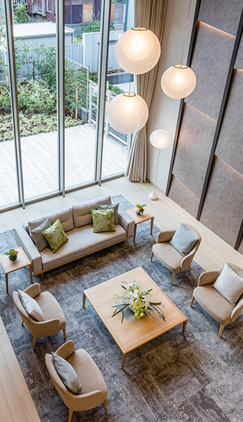 住まいとしての心地よさだけでなく、新しいものに触れて価値観を刺激する場であるよう、館内にアート作品や水槽を配置するといった取り組みも積極的に行なっています。